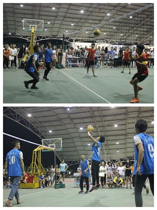 未开赛之前,气氛已经相当激烈,每位队员都做着热身运动,“战争”一出即发,观看的同学聚集在赛场周围翘首以待。双方队员各施绝技,相互配合,相互鼓励,积极配合,奉献了一场精彩绝伦的比赛,让在场的观众欢呼不已。外国语公司先发一球,拿下了漂亮的一分,公司男子队也不示弱,接着回击一球,取得了球权。明陞m88官方网站的女队员们更是“巾帼不让须眉”与传媒公司展开激烈的斗争,尽管我们不是专业队员但热情高涨。场下的拉拉队加油助威声一浪高过一浪。