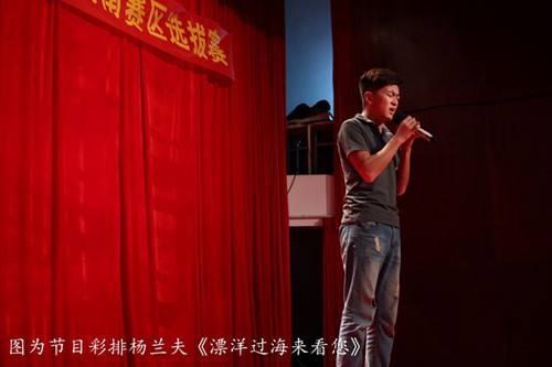 杨兰夫同学也演唱了一首《漂洋过海来看你》,深情款款的演唱,将自己心里的那种思念,送给了那个思念的人。