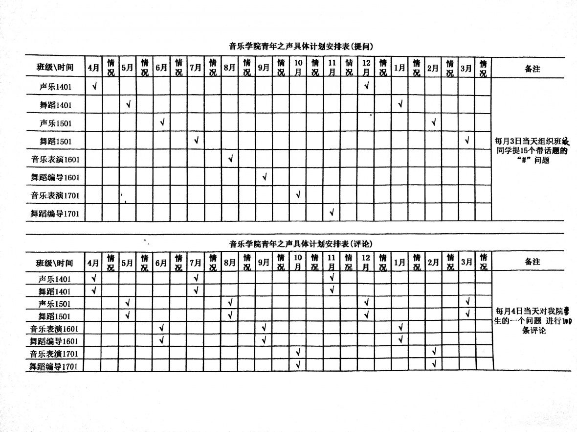 根据具体安排,本月3日由声乐1401班同学提问,,且在探讨后,确定的提问主题,分别为“校园春季招聘会”、“清明节”以及“校园卫生”希望声乐1401班的同学能根据主题,提出他们对于这三件近期需要注意问题上的心声,同时也希望广大同学能够为他们的发生,提出有建设性的回答和意见。希望同学们的困惑能够得到第一时间的解答。