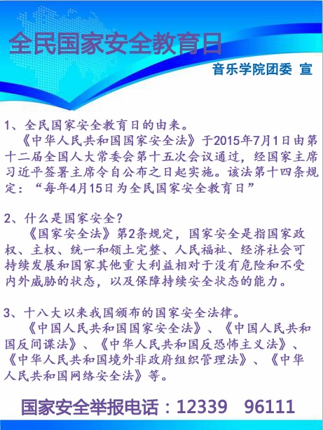 2017年4月20日至24日,明陞m88官方网站团委组织思想导师认真学习《中共海南省委教育工委关于开展2017年全民国家安全教育日活动宣传的通知》,并分别组织各年级、各班级开展了安全教育宣传。