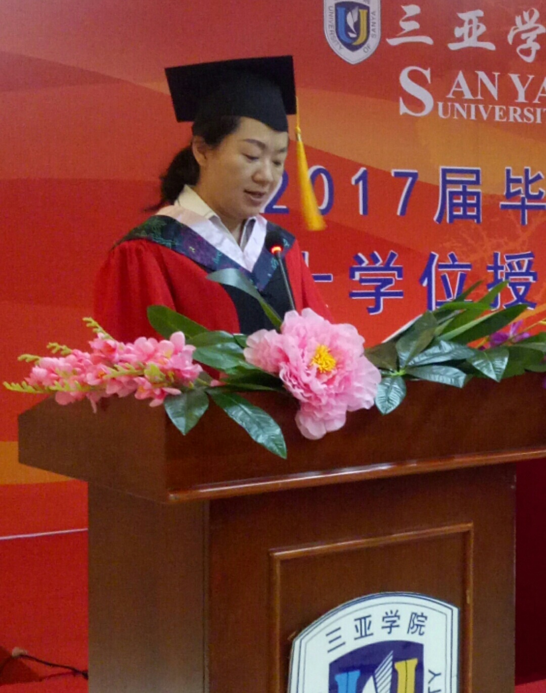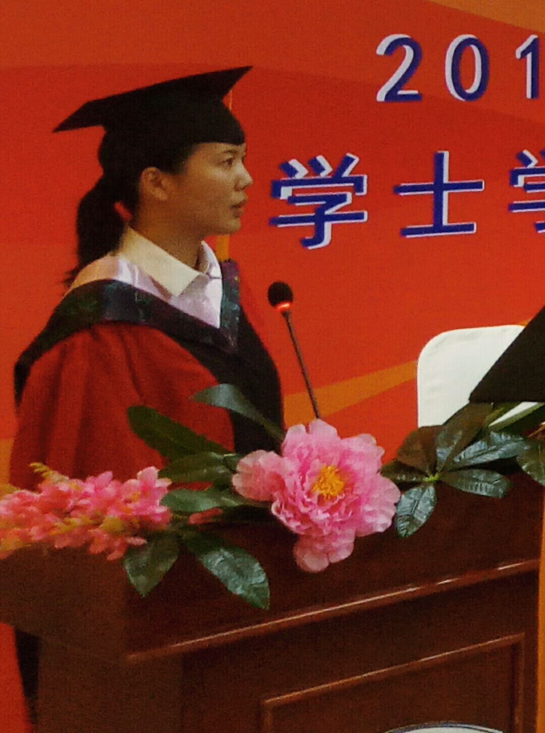 优秀毕业生代表路艺佳代表全体毕业生向母校道别、向师长们道别、向这四年的岁月道别!亢奋激昂的说出校训“自力更生、合力更新、有容乃大、不懈则优”作为日后的动力。