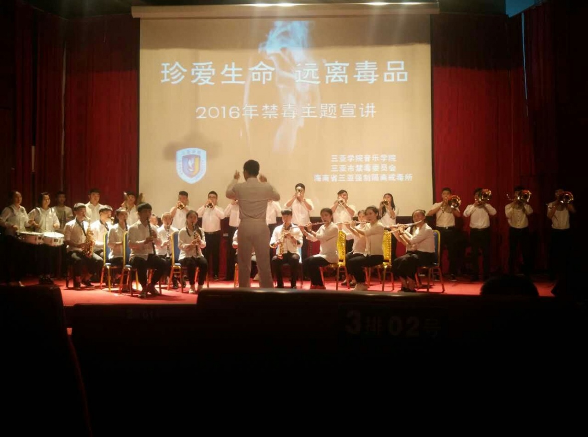 2016年12月7日对于管乐队来说,是个特殊的日子。乐队经过几个月刻苦的训练,马老师多方筹措,终于在这一天迎来他们的第一场音乐会“我的中国梦—管乐作品鉴赏音乐会”。由于是三亚第一场员工管乐音乐会,来了不少人。在最后一个音结束的时候,马老师望着观众席,内心久久不能平静,满脸不知道是汗水还是泪水,一滴一滴的往下流。这时,全场沸腾了起来.....