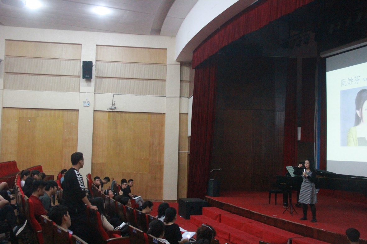 在演讲的另一环节里,公司老师和同学先唱出事先准备好的歌曲,然后由阮老师进行点评,并进行唱法发声、如何调节呼吸技巧等方面的指导。