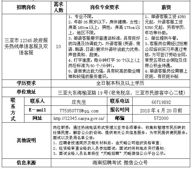 三亚市12345政府服务热线为市民、游客提供求助、咨询、投诉、建议等非紧急事务的政府热线电话、网络、微信一体平台。三亚市12345政府服务热线于2010年开始运营,由三亚市科技工业信息化局承办、市党政网络综合信息中心具体筹建,热线呼叫中心设有5个座席。为了配合行政审批改革的要求,促进行政审批工作的便捷,于2014年10月12345政府服务热线成立行政审批专席,设在政务中心,热线呼叫中心座席增至10个。