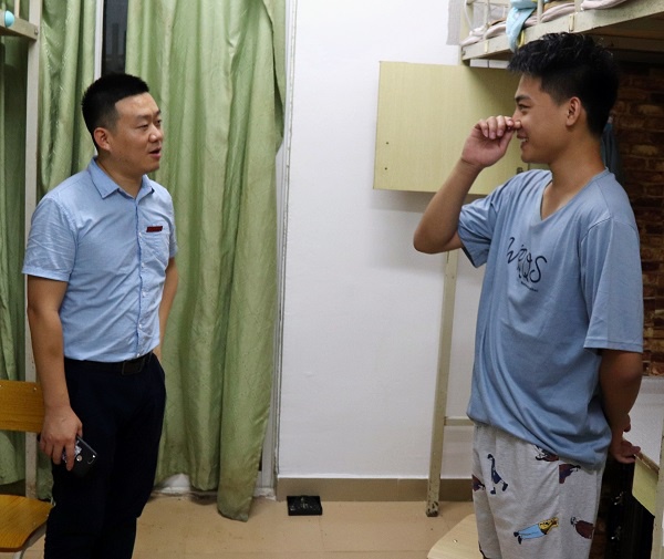 九月金秋,新学期开始了。9月7日18:00,明陞m88官方网站经理张巨斌教授,党总支副书记王科明、团委副书记袁威、思想导师席悦和员工干部等到新生宿舍进行走访,看望新生入住情况,解答新生各类疑问。