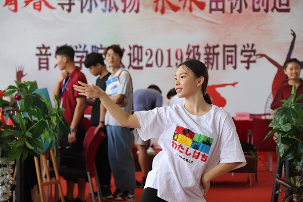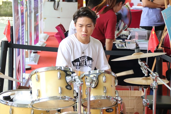 之后是来自流行专业的周王鼎成同学带来的精彩演唱,以及17级学姐的倾情献舞。19级新生李浩越也受到现场气氛的感染自发上台表演了架子鼓。