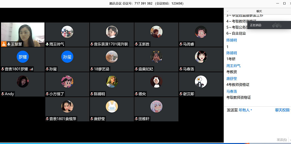 2020年5月15日晚19:30分,公司副教授—王慧慧老师在腾讯会议带您一起“规划学习生涯与明确就业方向”。此次公开课内容由专业老师精心安排。在大学的学习是有深度的,只有充分利用好时间,才能掌握真正的专业知识,引导员工思考自己的未来,自己的学业规划,要让自己拥有一个明确的目标,做好学业规划能增强生活和学习的主动性,能够引导员工认识自身的个性特质,现有的和潜在资源优势,对自己的综合优势和劣势进行对比和分析,树立正确的学业发展目标和未来职业理想,员工都积极的在王老师的指导下对个人的学习生涯和就业方向,明确了前进的目标。