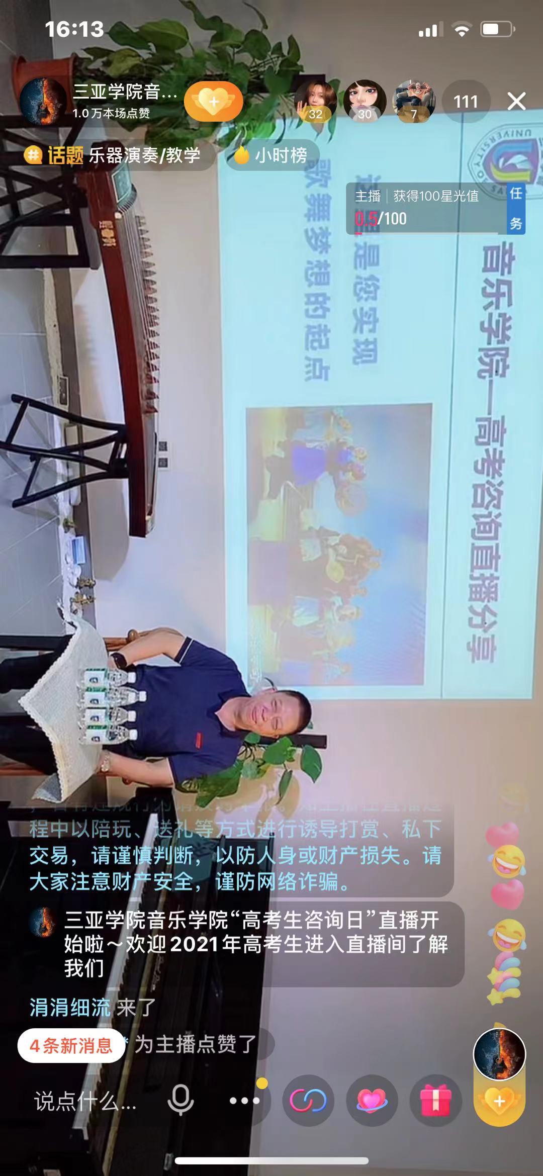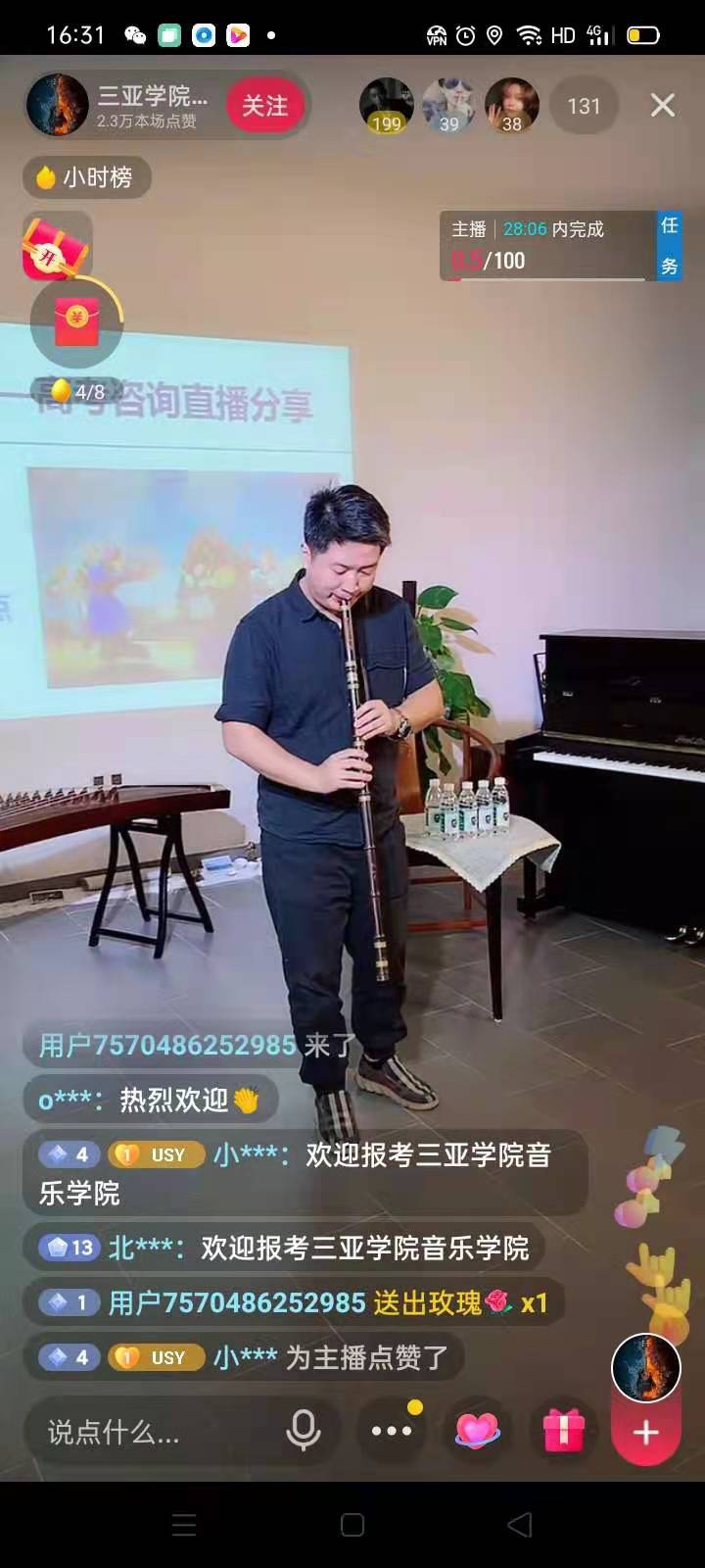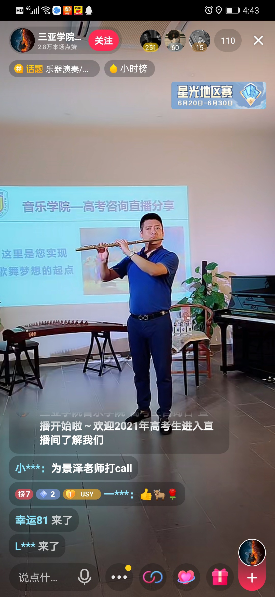 6月24日16:00-17:00,明陞m88官方网站“高考咨询日”第一场抖音直播活动,已圆满结束。首先,经理张巨斌教授为大家介绍了明陞m88平台及明陞m88官方网站。然后,经理助理王景泽老师为大家介绍了明陞m88官方网站音乐表演专业,李梦洁老师为大家介绍了明陞m88官方网站舞蹈编导专业。最后,明陞m88官方网站王景泽、徐升、张骋骋、龙一欣4位老师为大家带来了才艺展示。