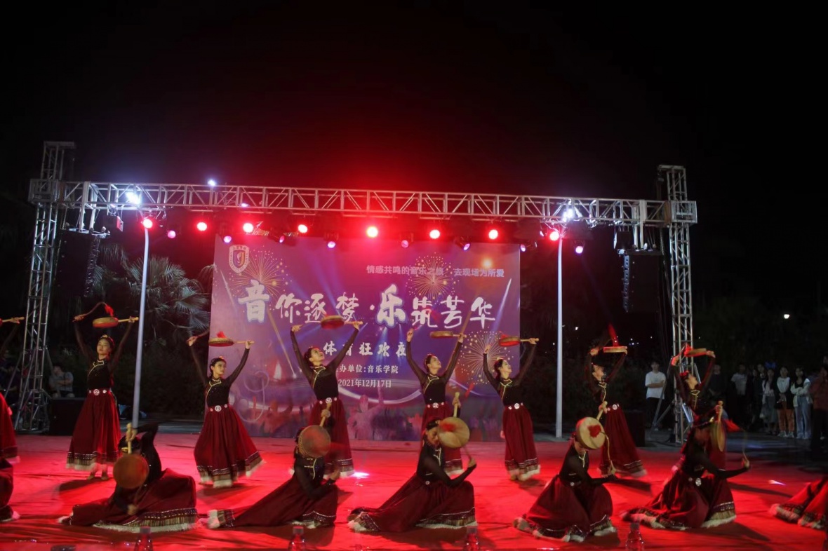 藏族热巴鼓舞历史悠久,是一种古老的民间舞蹈,吴晓宇老师编排指导的群舞《藏地春鼓》让我们感受到了它的魅力,舞蹈动作上和艺术形式上,都残留着古老遗风,动作粗旷有力。轻松愉快的游戏环节~让同学们在欣赏节目也会有参与感。由黄彬带来的二胡独奏《赛马》,奔腾嘶鸣的骏马,被二胡的旋律表现得惟妙惟肖。刀影迷蒙,光滑交错,龙一欣老师编排指导的群舞 《刀•影》展现了朝鲜族人民对美好生活的憧憬。由田然、马巧月、余会英带来的吴晓宇老师编创的舞蹈《走出大山》,描绘了在那美丽的青藏高原上,三个藏族姑娘相约一同走出大山去看看那美丽世界的美好夙愿。