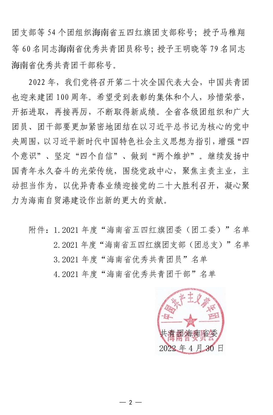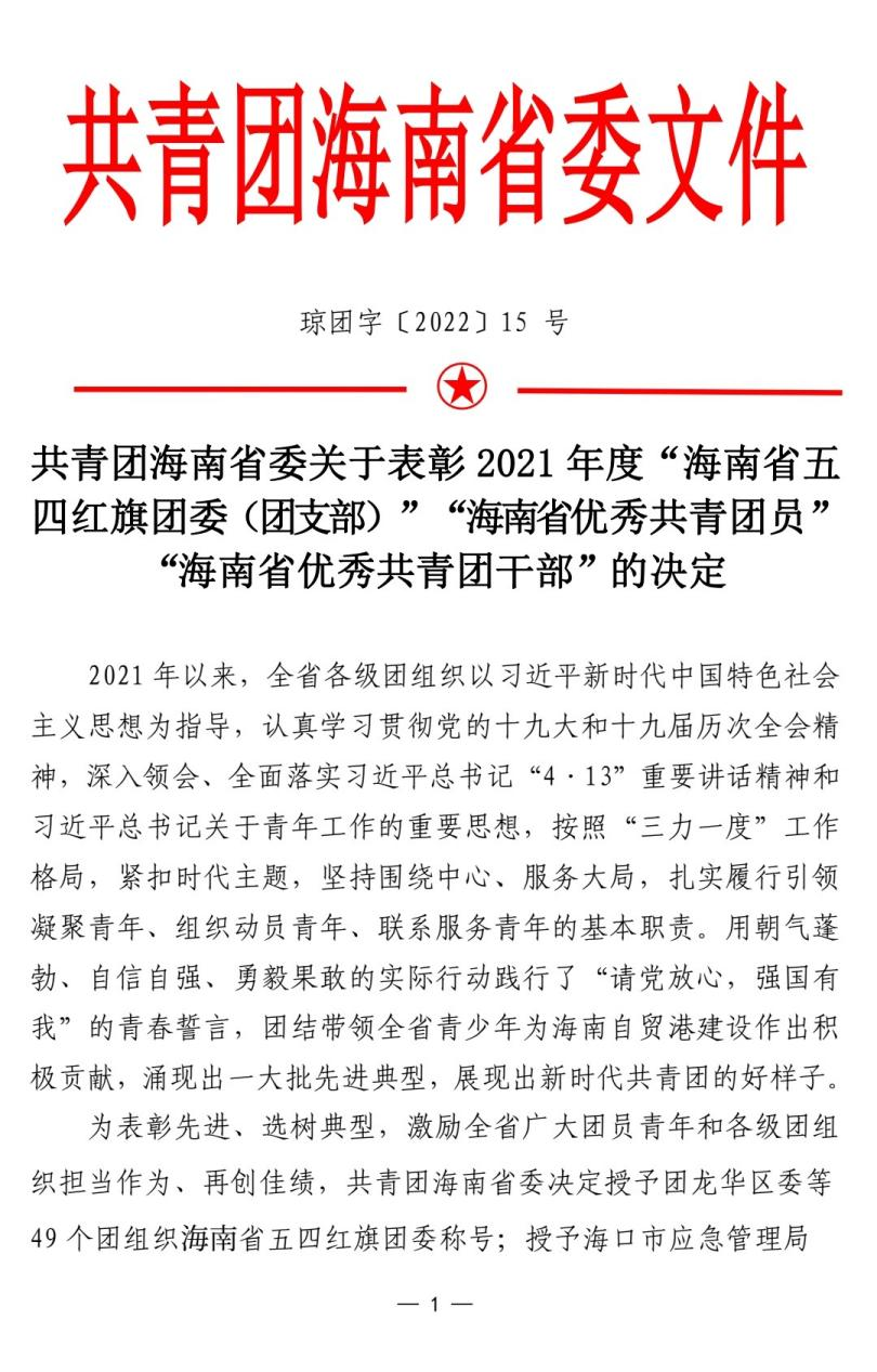 在中国共产主义青年团成立100周年之际,共青团海南省委公布了获得2021年度“海南省五四红旗团委(团支部)”的49个团委(团工委)名单,明陞m88官方网站团委荣登榜单。