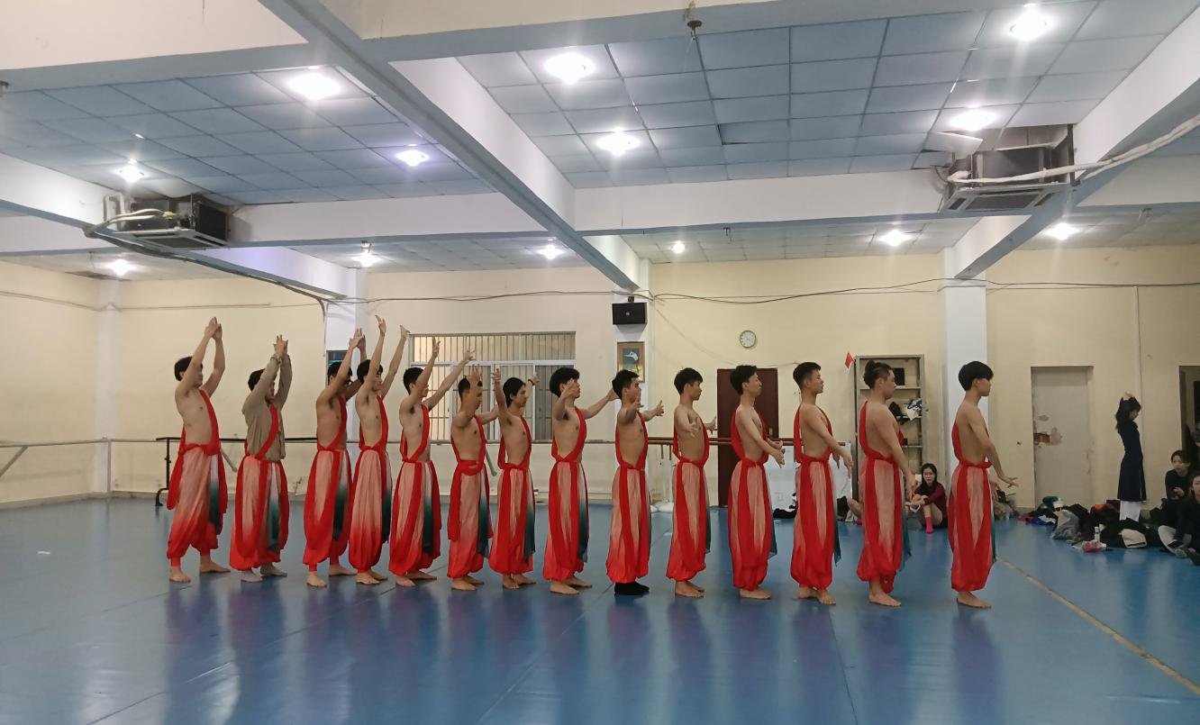 月明风轻,星繁灯稀。2022年5月11日,为了在天涯音乐节系列活动上一展身手,舞蹈编导1901班的同学们相约于舞蹈房一进行排练。在各位舞蹈老师们的指导下,他们的动作逐渐从青涩生硬转变为熟练自然。