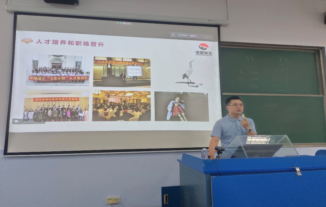 接着,由三亚千古情人力资源总监蔡帅帅介绍了杭州宋城集团控股有限公司,该公司确立了“宋城”“千古情”等品牌,坚持正确导向,用中国文化讲述中国故事,塑造隽永的艺术形象。最后,还有来自海南省海口市的海南民艺文化发展有限公司总经理王茵女士进行招聘宣讲,公司致力于海南青少年文化艺术教育的发展,以文化艺术考级、展演赛事、文化交流活动为基础,打造海南最具专业化的文化艺术推广交流服务平台。