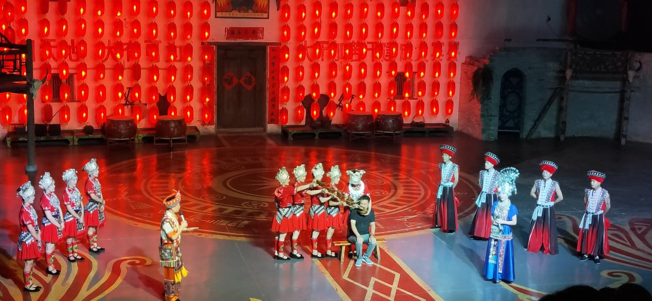最后,古寨演出给人一种身临其境的感觉。在独特的演出场地和环境中,观众们可以感受到浓厚的文化氛围,融入到节目中,中途请上台的观众,在台上感受了高山流水待客人的尊贵等等。