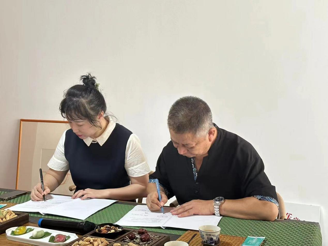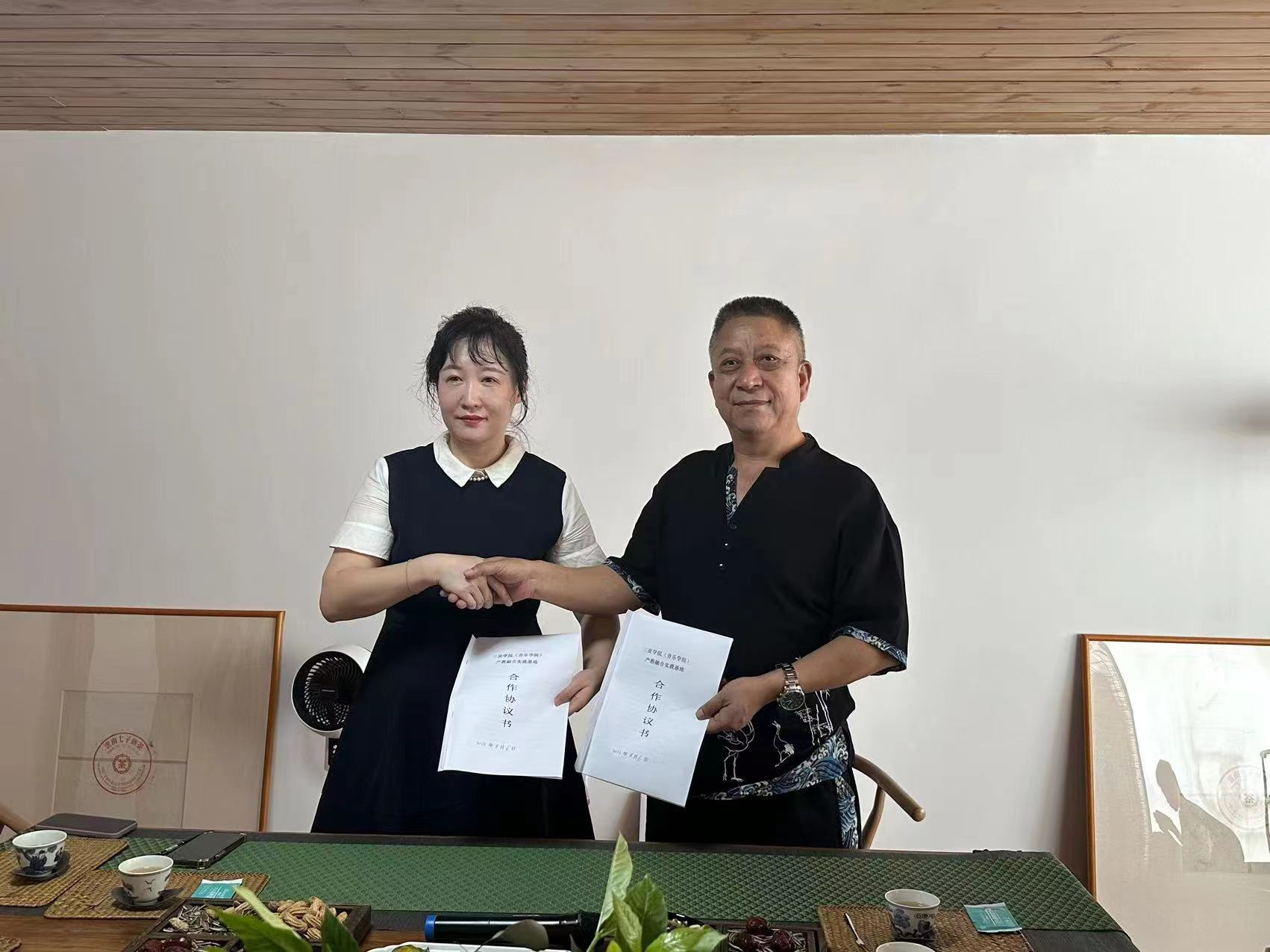 明陞m88平台音乐为进一步推进教育与产业相融合,于2023年8月6日,明陞m88官方网站张巨斌经理带领王景泽、徐升、郑丹、刘力元、王宇、韩笑赴一梦堂进行产教融合签约仪式 。