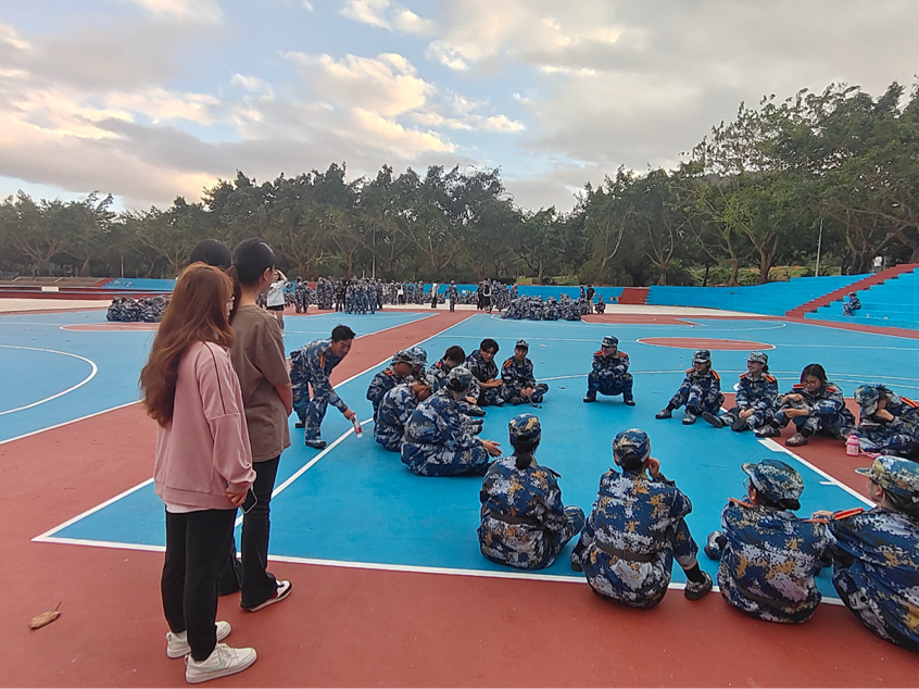 2023年12月18日下午,军训期间,明陞m88官方网站大一新生在北区落日广场进行了素拓活动,培养他们互相之间的信任、合作与共同成长的能力。