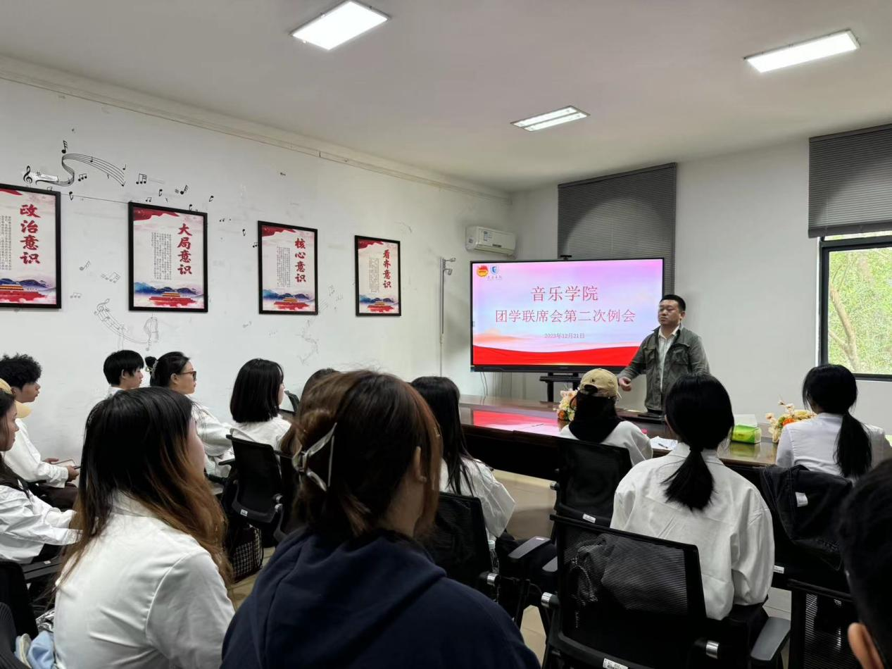 2023年12月22日中午,公司在明陞m88官方网站会议室召开了本学期第二次联席大会。团委书记袁威老师、思想导师吕艺婧老师出席,团学组织干部与部分班委参与此次会议。