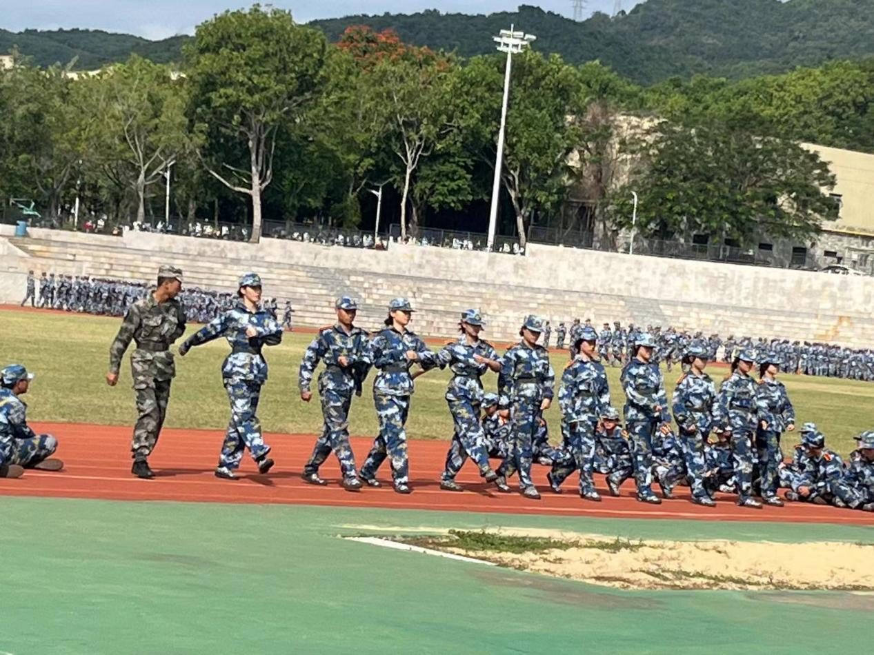 “腿绷直,脚尖下压,脚掌与地面平行,全脚掌着地,身体重心前移,上体正直,微向前倾。”踢正步训练是军训中的重要环节,通过这项训练,学会了如何保持正确的姿势、步伐和节奏。踢正步训练与其他军训项目紧密相关,如队列训练、集体操等。同学们通过踢正步训练培养了严明的组织纪律性和团队协作能力,这些素质在集体活动中显得尤为重要。大家逐渐意识到,只有每个人都严格遵守规则,才能保证整个团队的协调一致