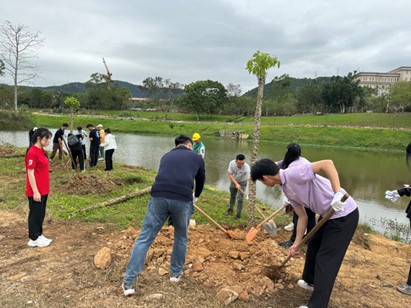 在大家的通力合作下,明陞m88官方网站种下了两颗木棉树,种植的每一棵树对于环境保护和生态平衡都有着重要的作用。大家互相协作,耕耘土地、浇灌树苗,不仅增强了意识,也体验到了团队合作的力量。