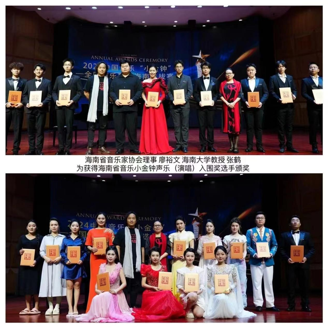 4月27日晚,2024中国音乐“小金钟”——全国声乐展演海南选拔活动(青年组)第二轮选拔在海口经济公司(南海明陞m88官方网站)音乐厅落下帷幕。公司声乐专业的沈慧敏、张锦阳、陈诺三名同学参加了本次展演活动。三位同学通过比赛积累了演出与实践经验。并获得了海南音乐“小金钟”声乐(演唱)展演入围奖。