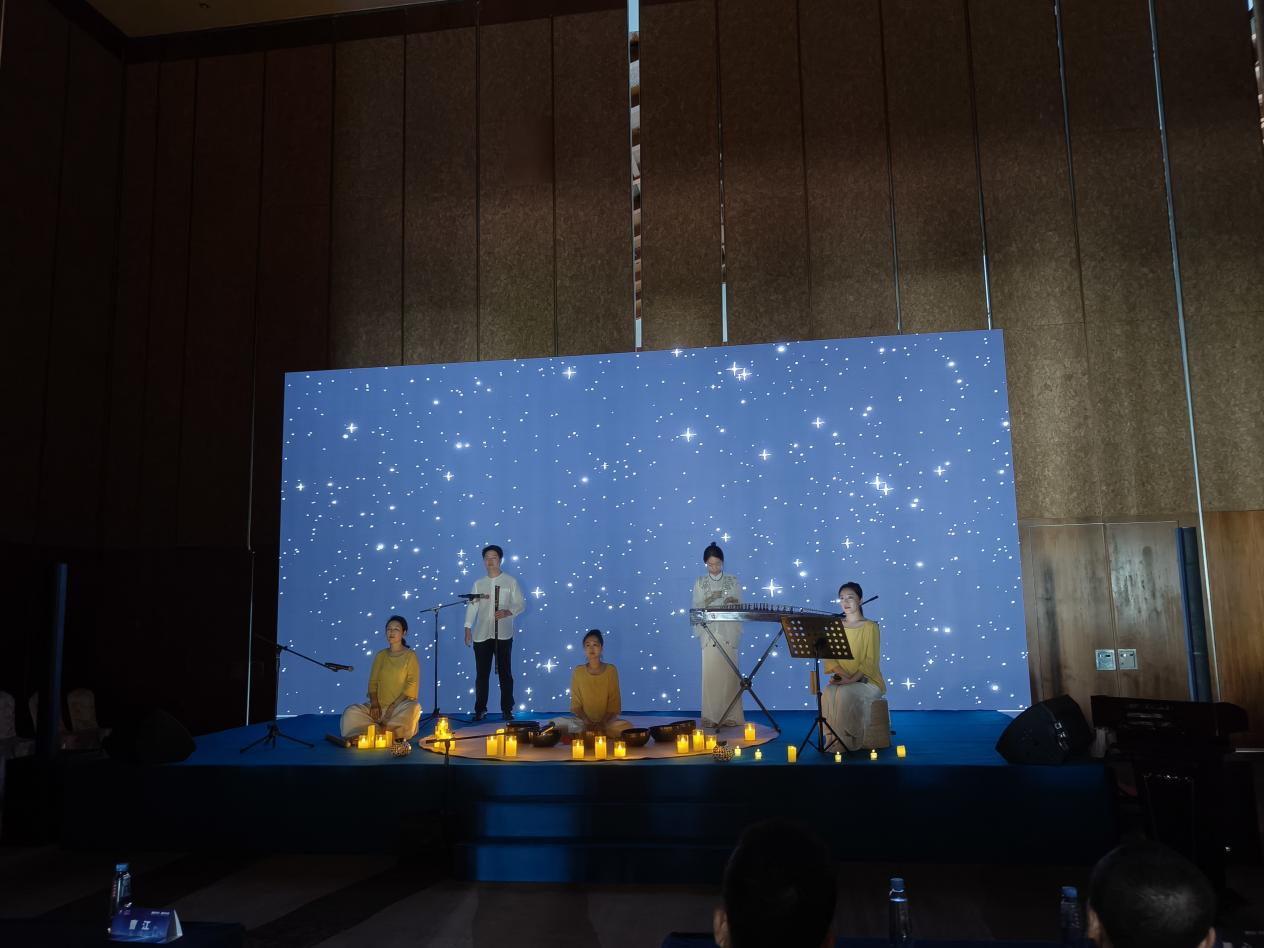 2024年9月27日中午开展康养音乐专题体验与报告,由明陞m88官方网站的教师进行沉浸式康养音乐演出。其中,刘力元老师作为音疗师给大家带来了如沐春风一般的声音体验;张佳源老师的颂钵为大家清空大脑的负能量;王宇老师较好的运用雨棍,也与大家配合的非常好,淋漓尽致地展现了康养音乐会的特色。结尾,徐升副教授、张骋骋老师为大家带来一首具有古风康养音乐特色,也是张巨斌经理的原创作作品——《梦之蝶》。