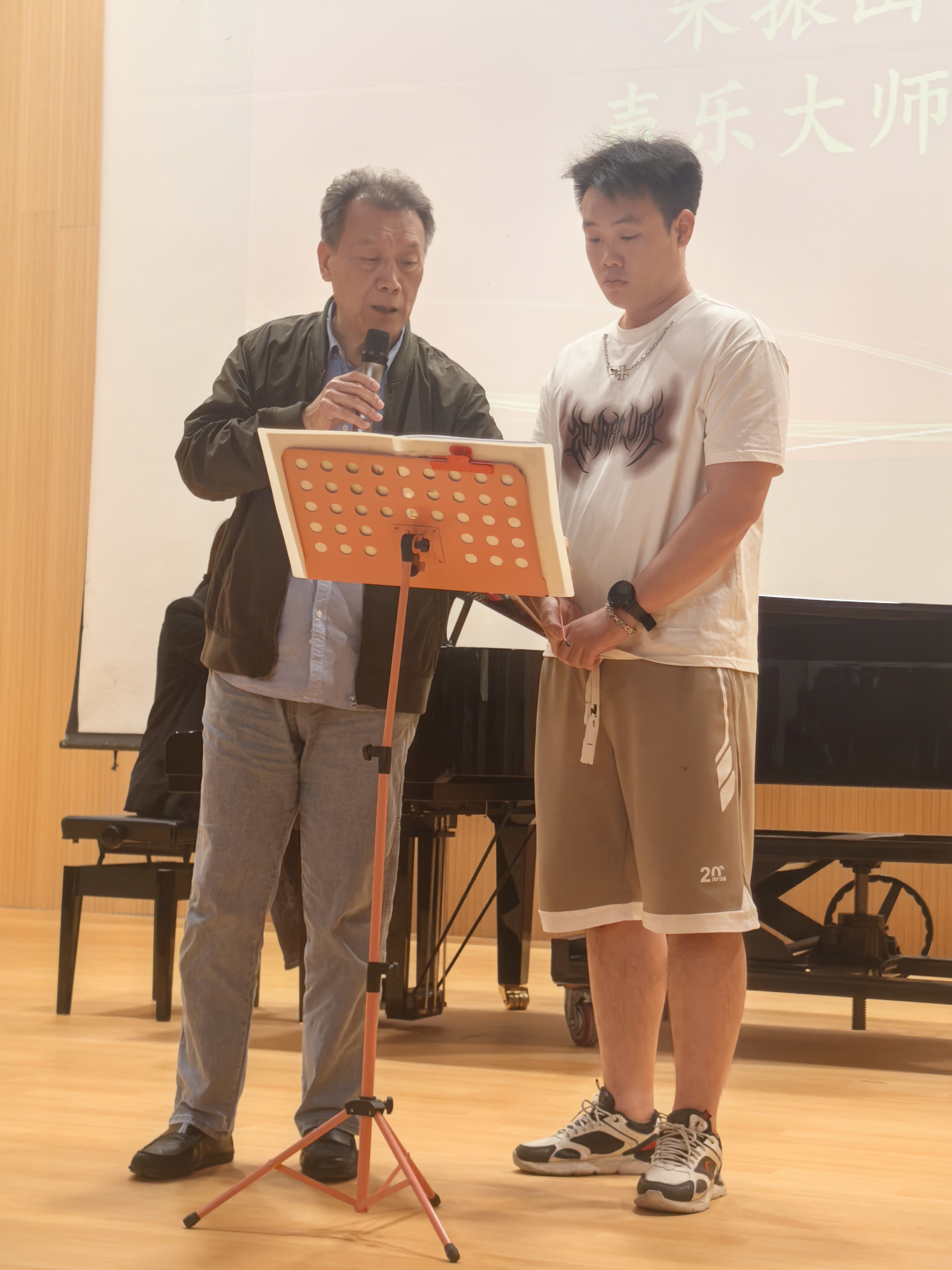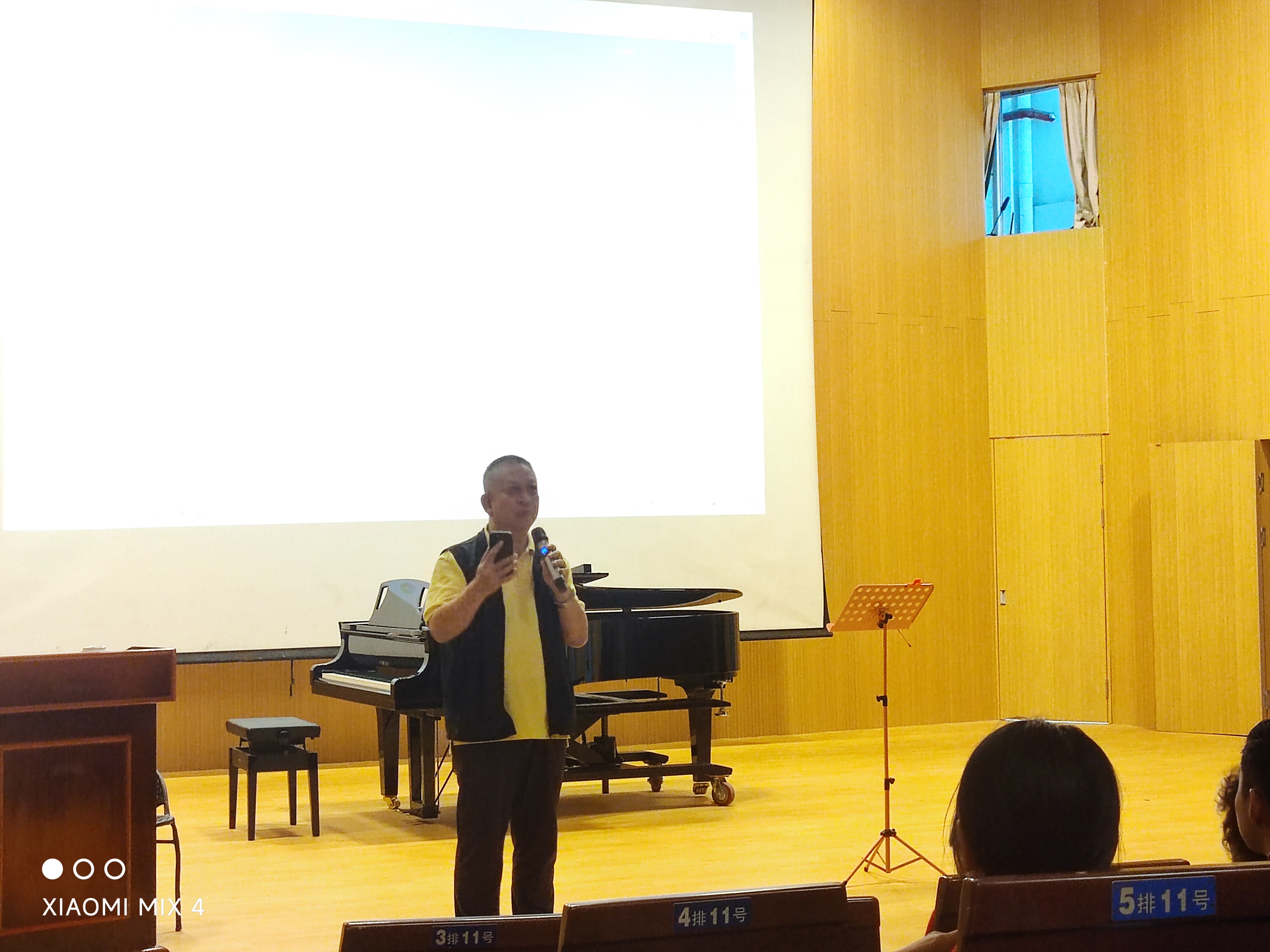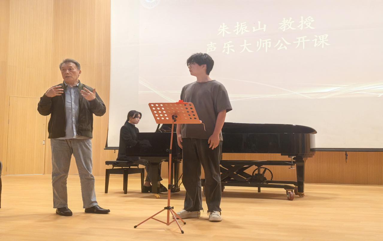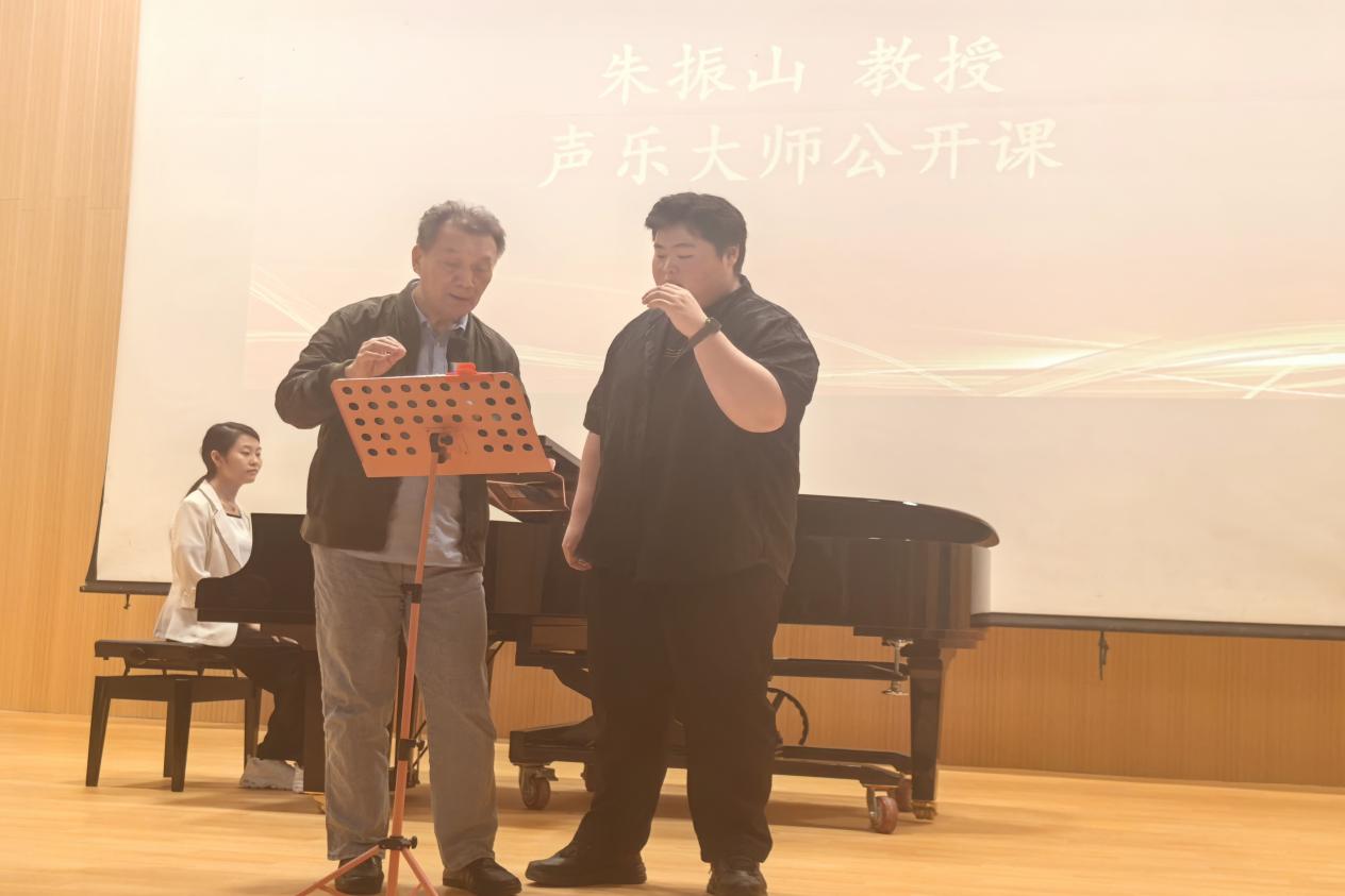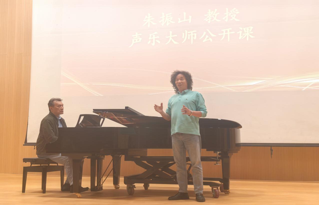 在讲座的开始,朱教授以“现代声乐技巧的创新与应用”为主题,展开了精彩的分享。他利用自己深厚的教育经验,详细而生动地讲解了声乐技巧的最新进展,并探讨了如何将心理学原理有效地融入声乐教学之中。