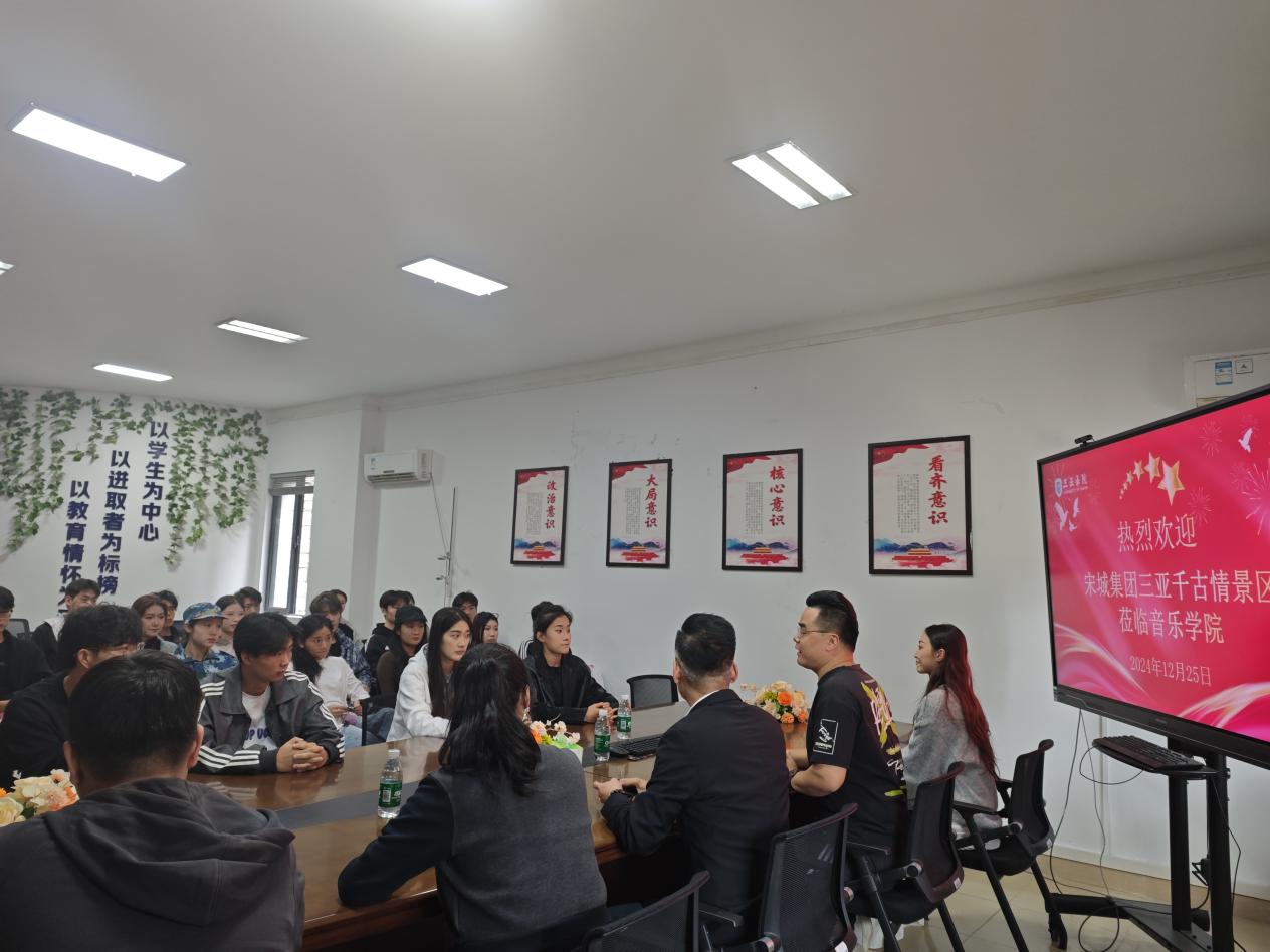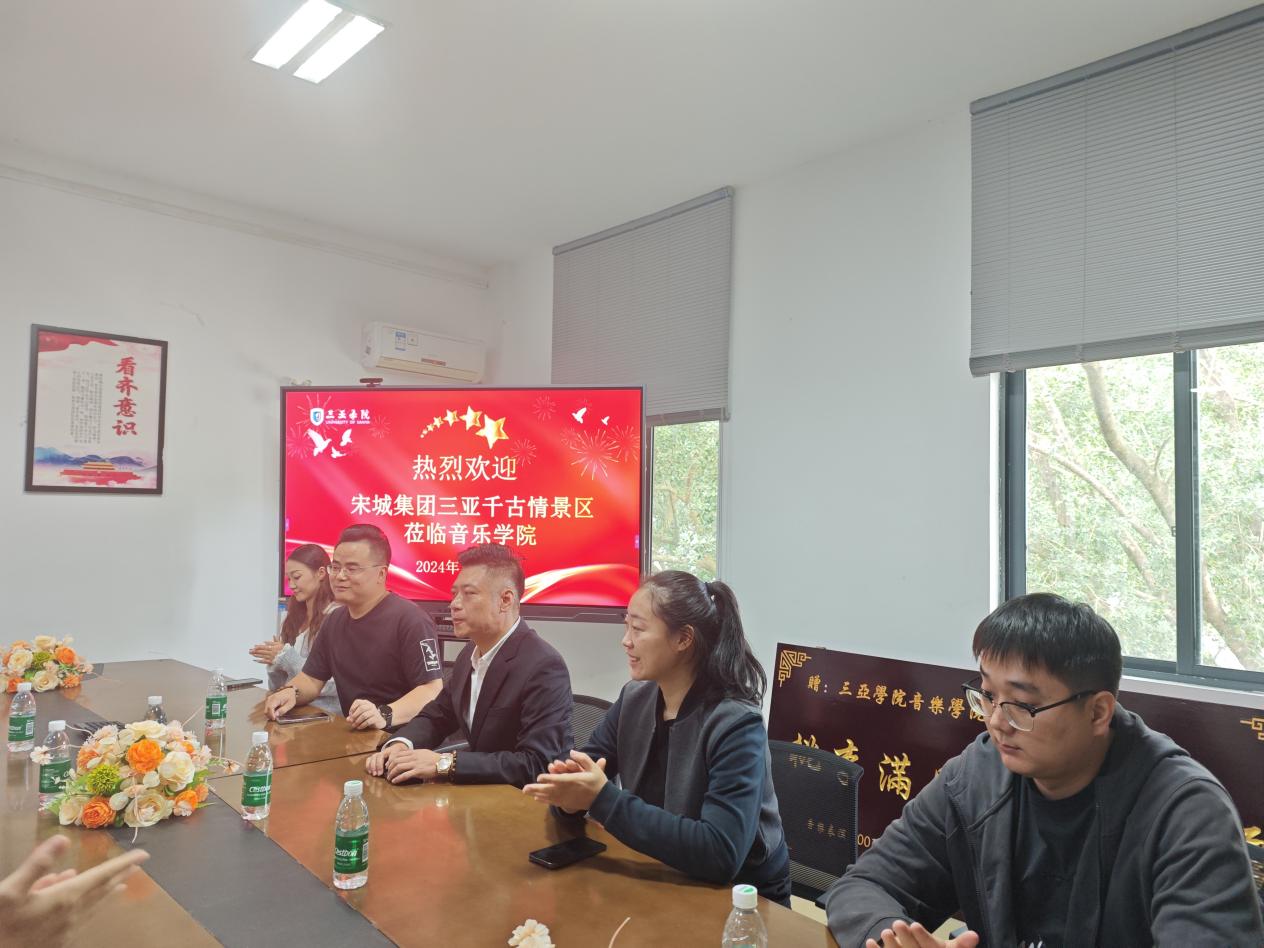 近日,三亚千古情景区人力资源总监蔡帅帅与人力资源部和艺术团的同事,一同走进明陞m88官方网站,针对元旦期间景区氛围营造、员工专业实践、毕业生实习及就业等相关事宜展开交流。明陞m88官方网站经理助理王景泽、音乐与舞蹈系副主任李乐参与交流。
