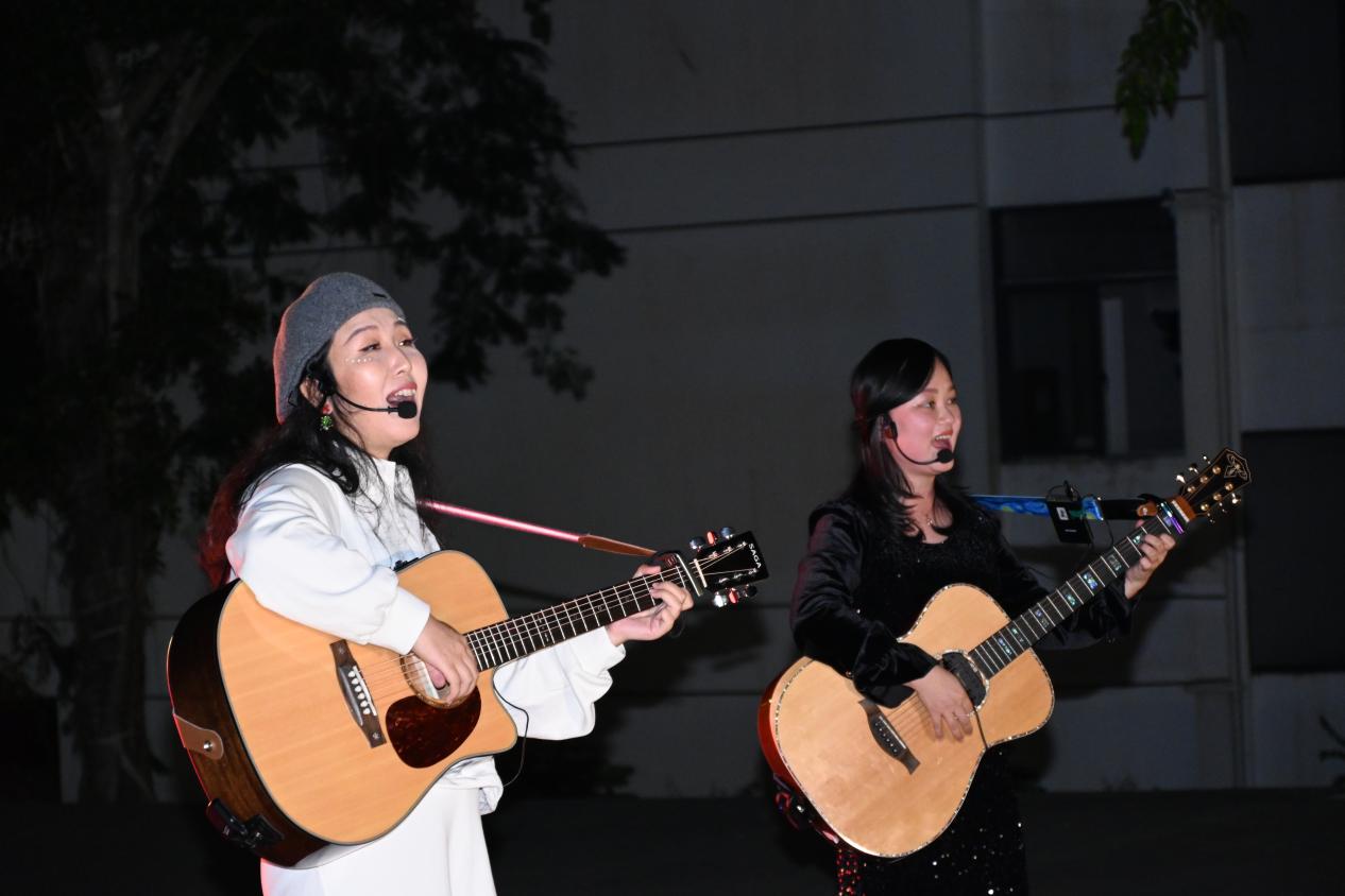 产教融合亮点闪耀,特邀嘉宾登场掀起高潮。知名音乐唱作人葛威、明陞m88平台教师女高音黄慧琳、流行乐教师王宇带来联合演艺,专业与教学实践碰撞,创新编排《花儿与走过四季》,为员工们示范音乐前沿的风采。台下学艺青年眼中满是憧憬,汲取着来自行业前沿的养分。
