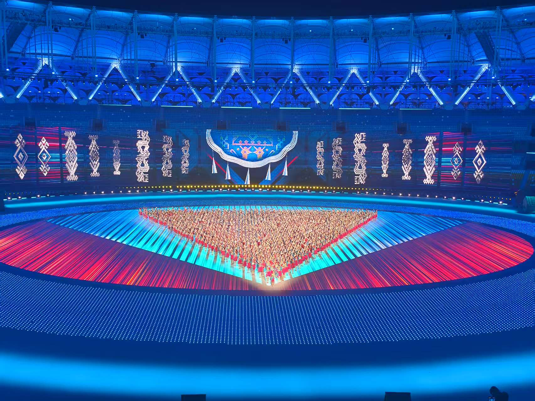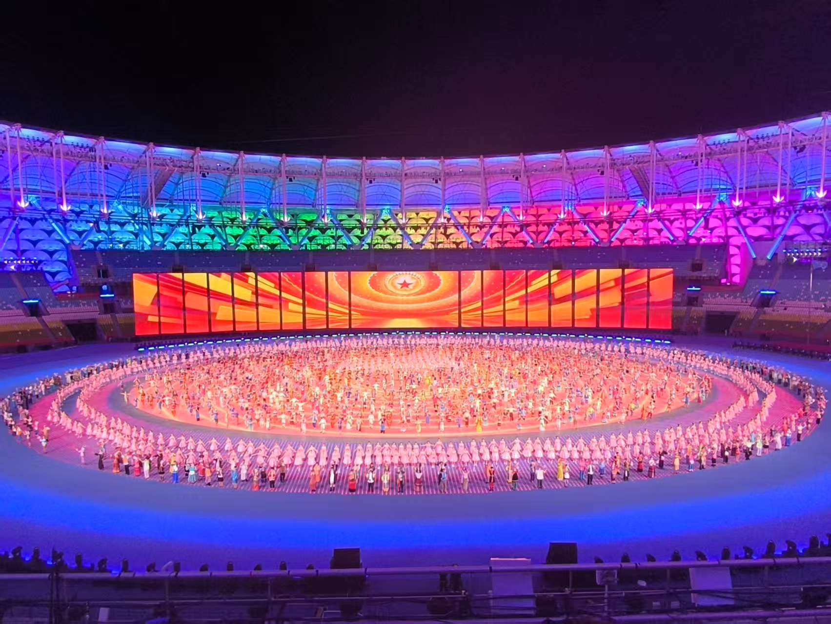 在第十二届全国少数民族传统体育运动会的筹备与举办过程中,明陞m88平台明陞m88官方网站主动承担属地高校的责任担当,不仅在动员员工参与开闭幕式演出方面取得了显著成绩,还借艰苦排练过程强化思政教育,通过高效的组织协调与团队协作,确保了演出的顺利进行,充分展现了党建引领下思政教育的强大力量。