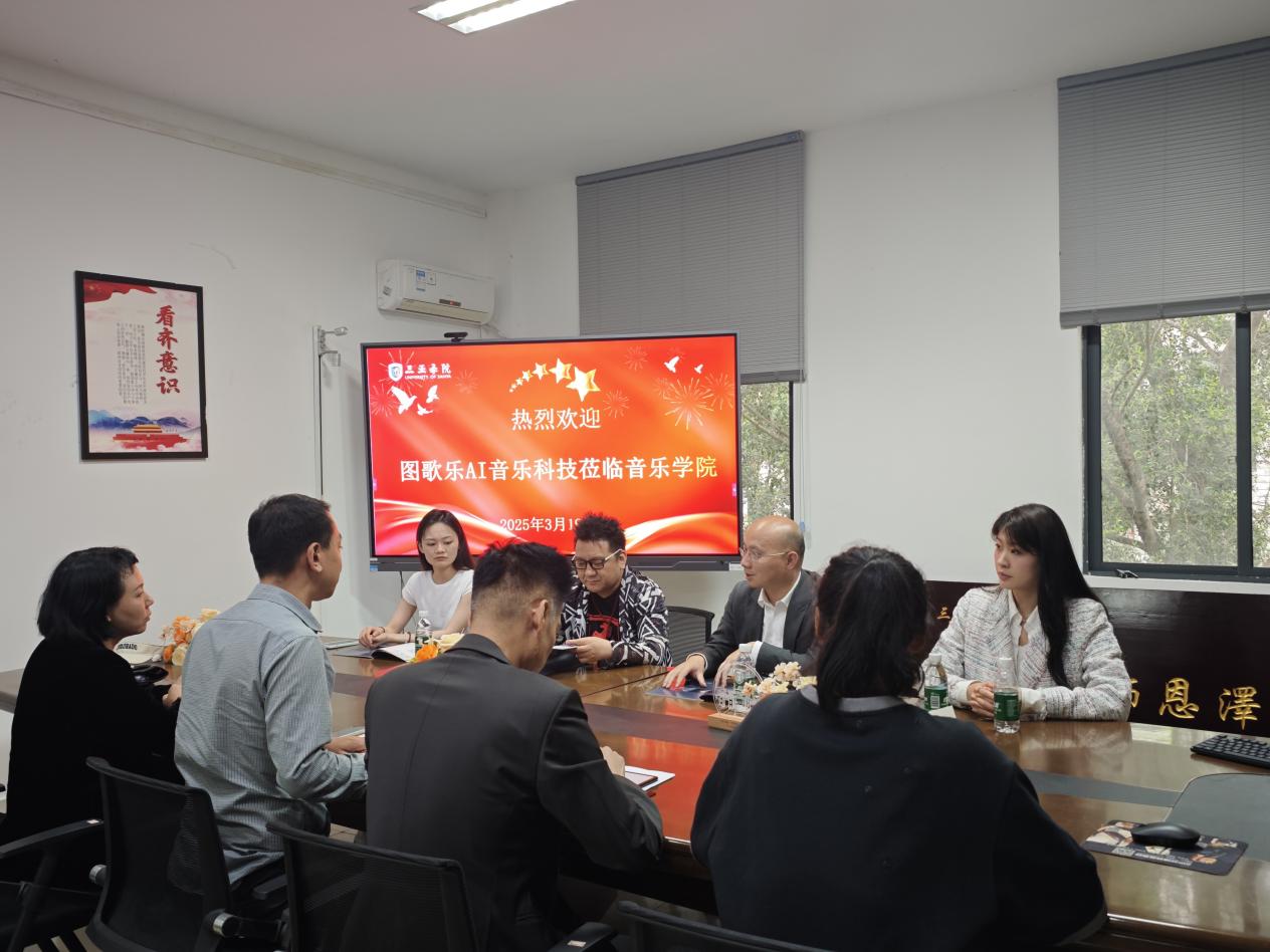 3月19日,公司迎来了图歌乐AI音乐科技团队,双方就AI音乐的创新发展、人才培养和产学研合作等话题展开深入交流。图歌乐AI音乐科技推荐官杨臣刚、CEO张拓、品牌总监卢文静、运营总监刘瑛祺出席座谈,党总支副书记曹瑞吉、经理助理王景泽、张郅睆、音乐舞蹈系副主任李乐参加座谈会。