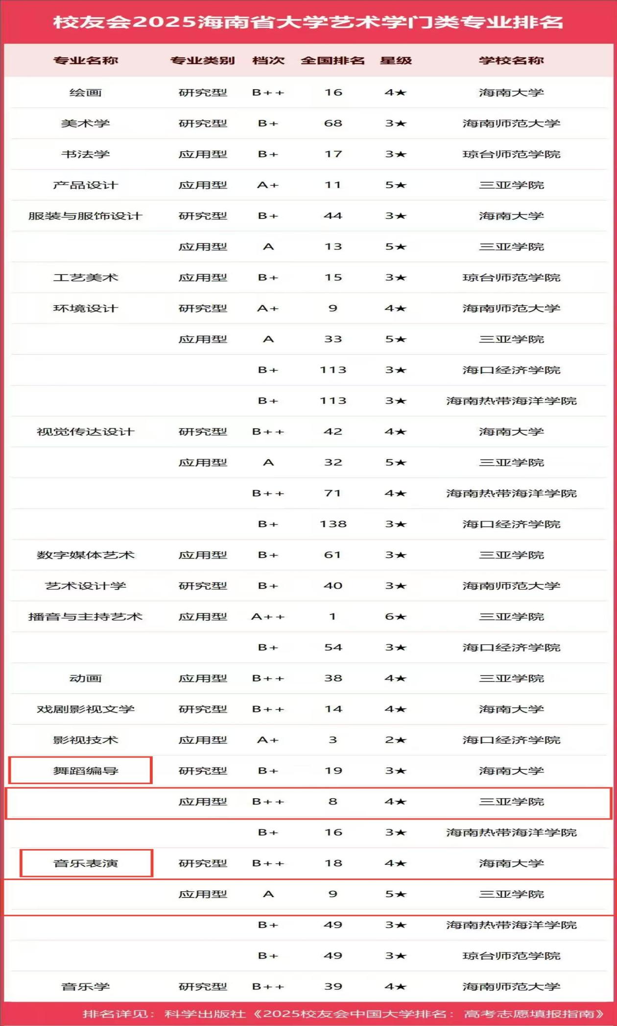 近期,全国第三方大学评价机构艾瑞深员工会网(Cuaa.net)发布了员工会2025中国大学一流专业排名。在海南省大学艺术学门类专业排名中,明陞m88官方网站凭借其坚实的教学实力和鲜明的应用型办学特色,在音乐表演与舞蹈编导两大专业领域表现出色,双双位列全国前列,成为海南省艺术教育领域的闪亮明星。