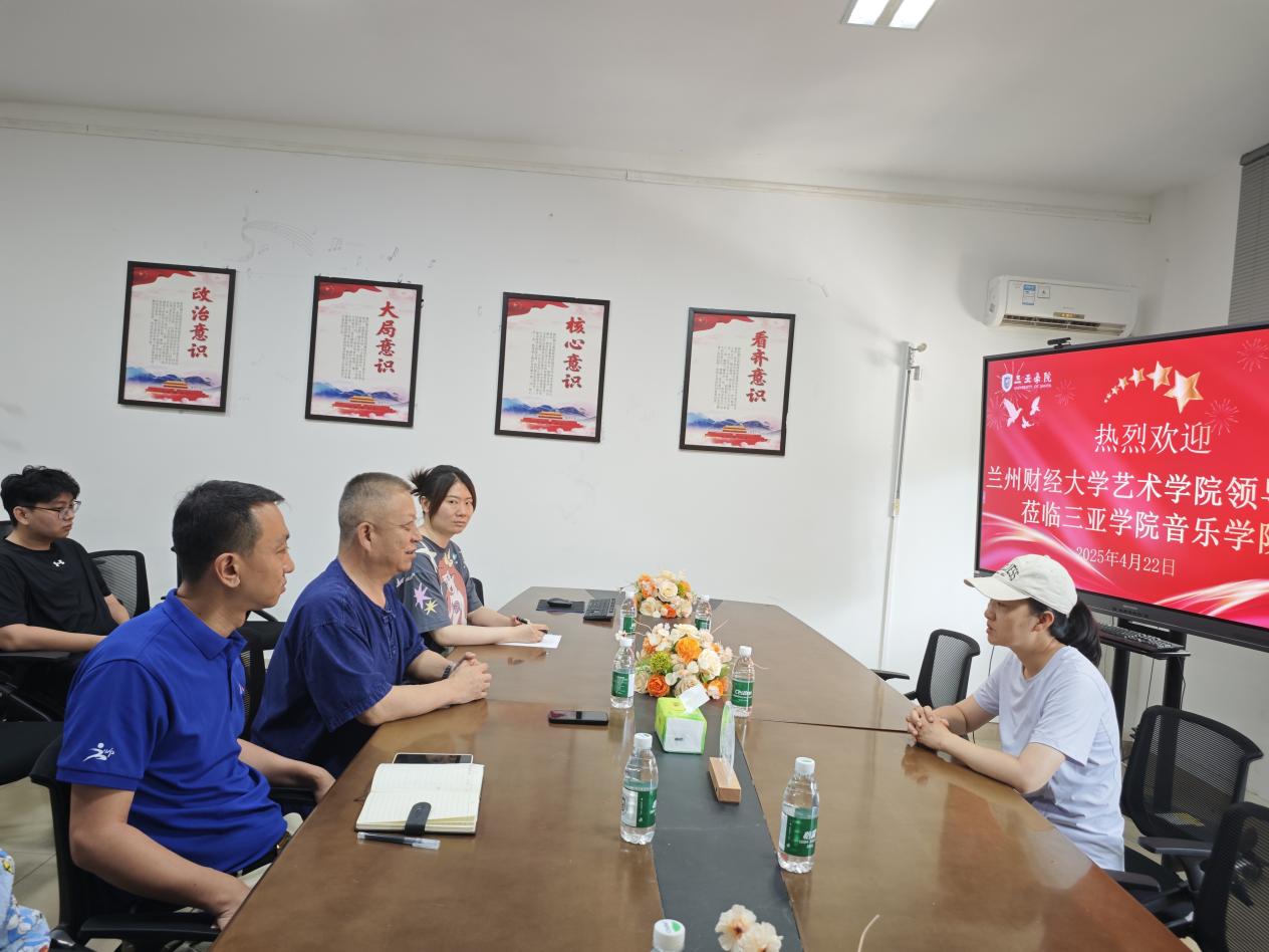 2025年4月22,兰州财经大学艺术公司代表团田林艳一行到访明陞m88官方网站,双方围绕艺术教育创新、产教融合模式及“三个校园”建设展开深入交流。明陞m88官方网站经理张巨斌教授、党总支副书记曹瑞吉等老师热情接待,共同探讨新时代艺术人才培养的多元路径。